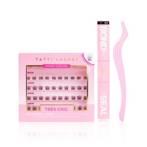 Tatti Lashes vippebuketterne kommer på enten sorte eller klare strimler. For kvinder med en mørk øjenkrog fungerer mulighed nummer 1 bedre, så det var det, jeg valgte. Som tilbehør til vippebuketterne indeholder kittet: